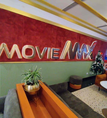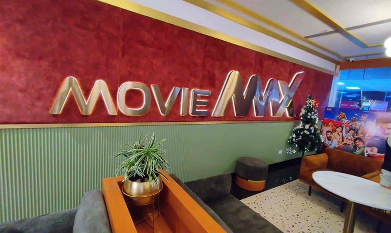 Interior branding and premium signage design executed for Movie Mix, creating a modern and visually engaging entertainment space.🎬✨